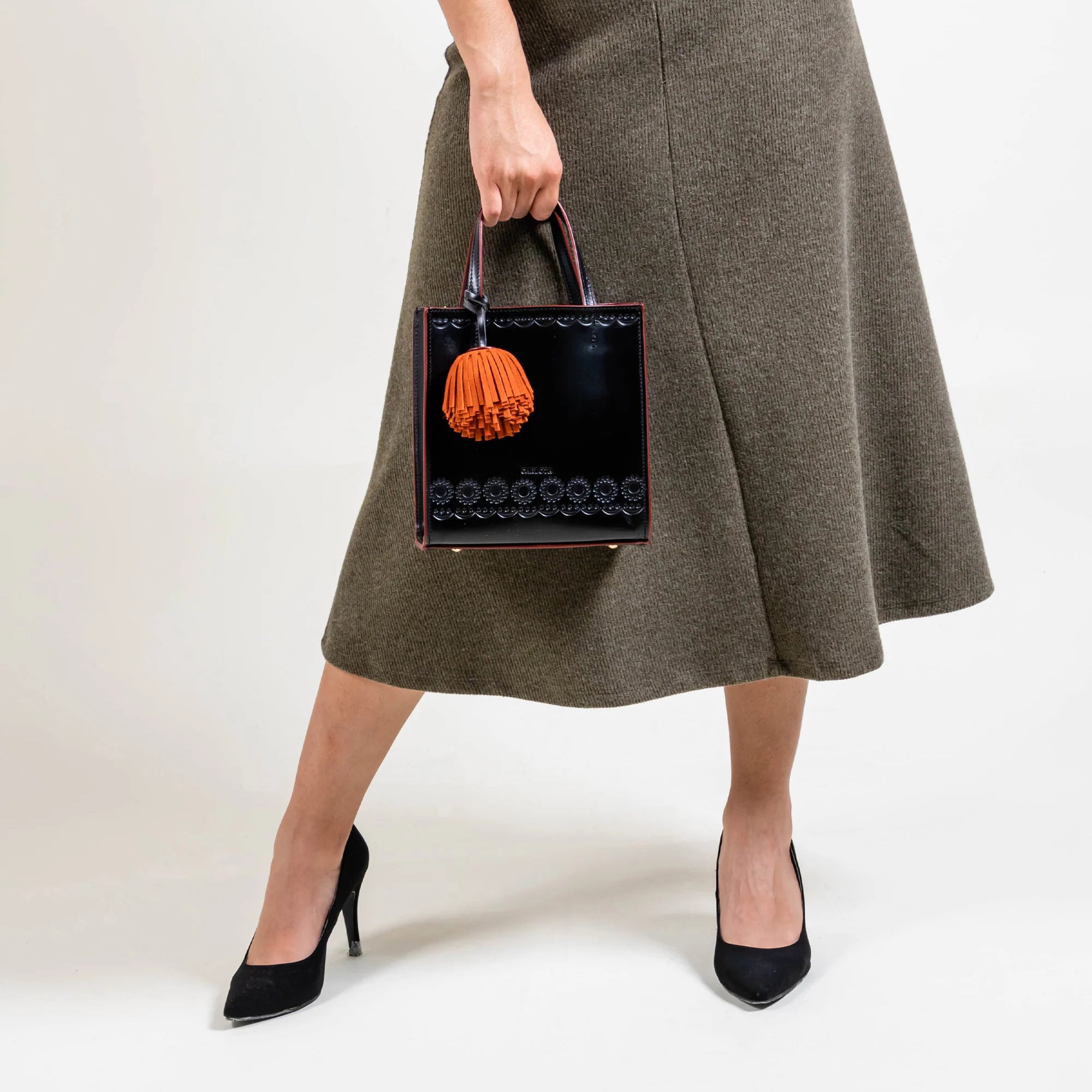 Designed with versatility in mind, it features an adjustable long strap to wear as a crossbody and a short top handle for hand bag use. Finished with hand-engraved details and a charm inspired by Mexican flora, adding an artisanal and meaningful touch.