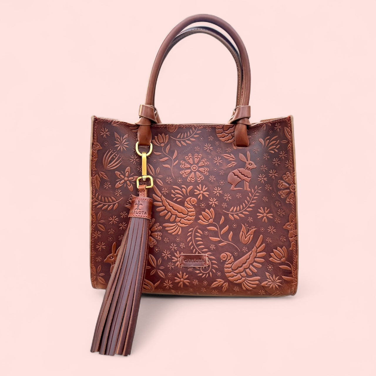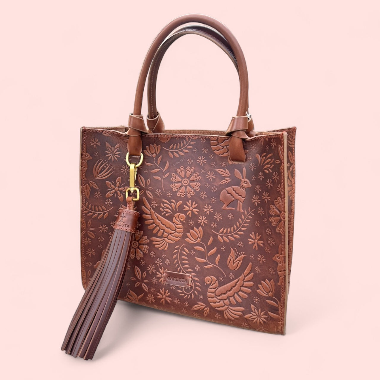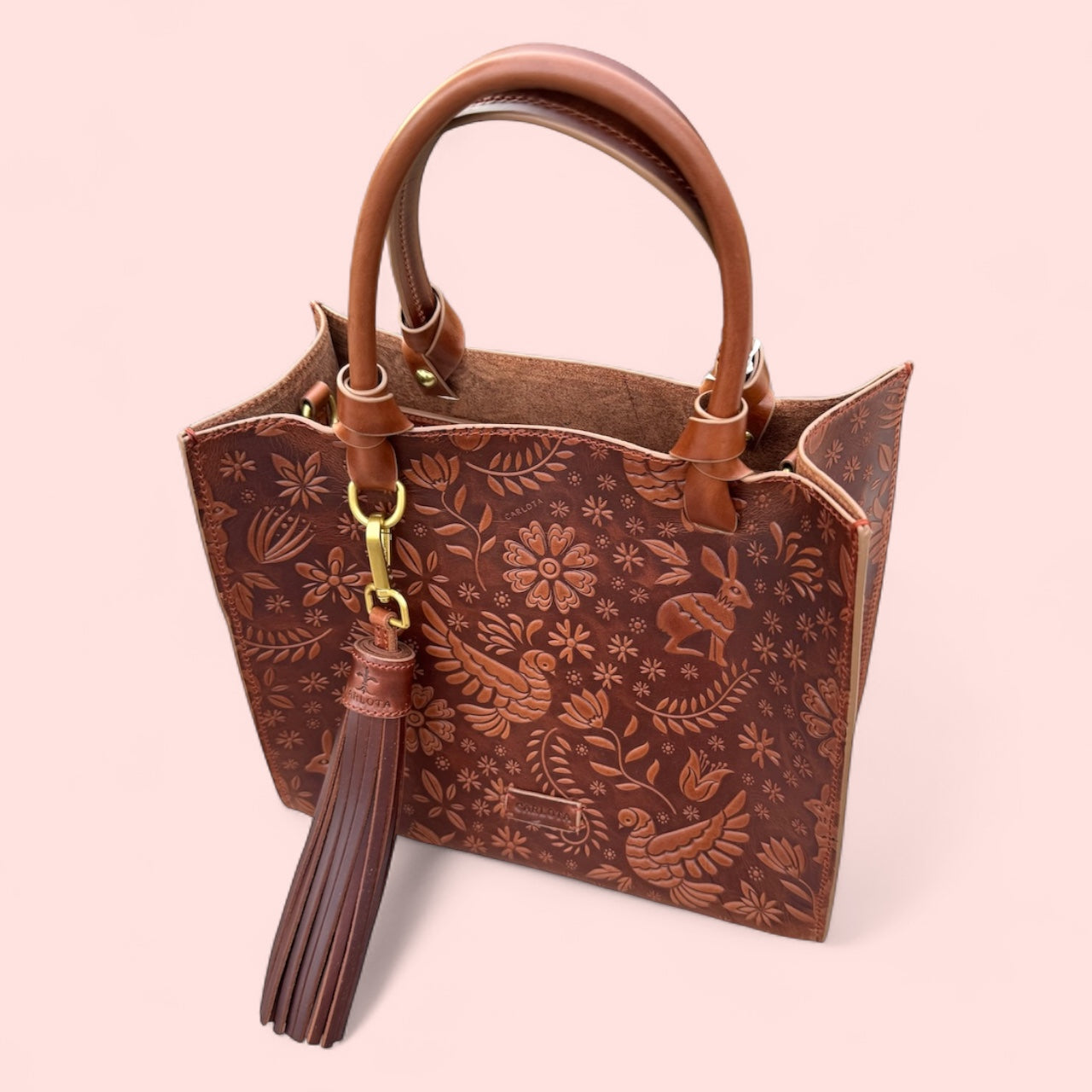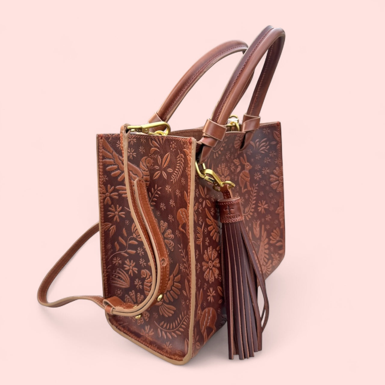 Discover our Mini Tote Bag from the Liebre Collection, featuring an elegant embossed engraving inspired by the fascinating legend of the hare. This bag stands out with its decorative charm and gold-tone hardware, perfectly blending luxury and mythology. Designed with a practical inner pocket, it includes a top handle and an adjustable strap, offering a versatile style to suit any occasion. Ideal for those seeking a touch of magic in their daily lives, this mini tote is the perfect accessory to carry a piece of history and sophistication with you.